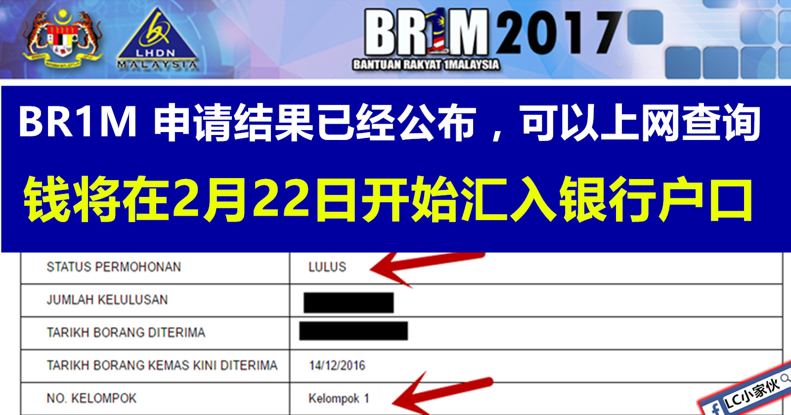 第一批br1m将在2月22日汇入银行户口 Lc 小傢伙綜合網