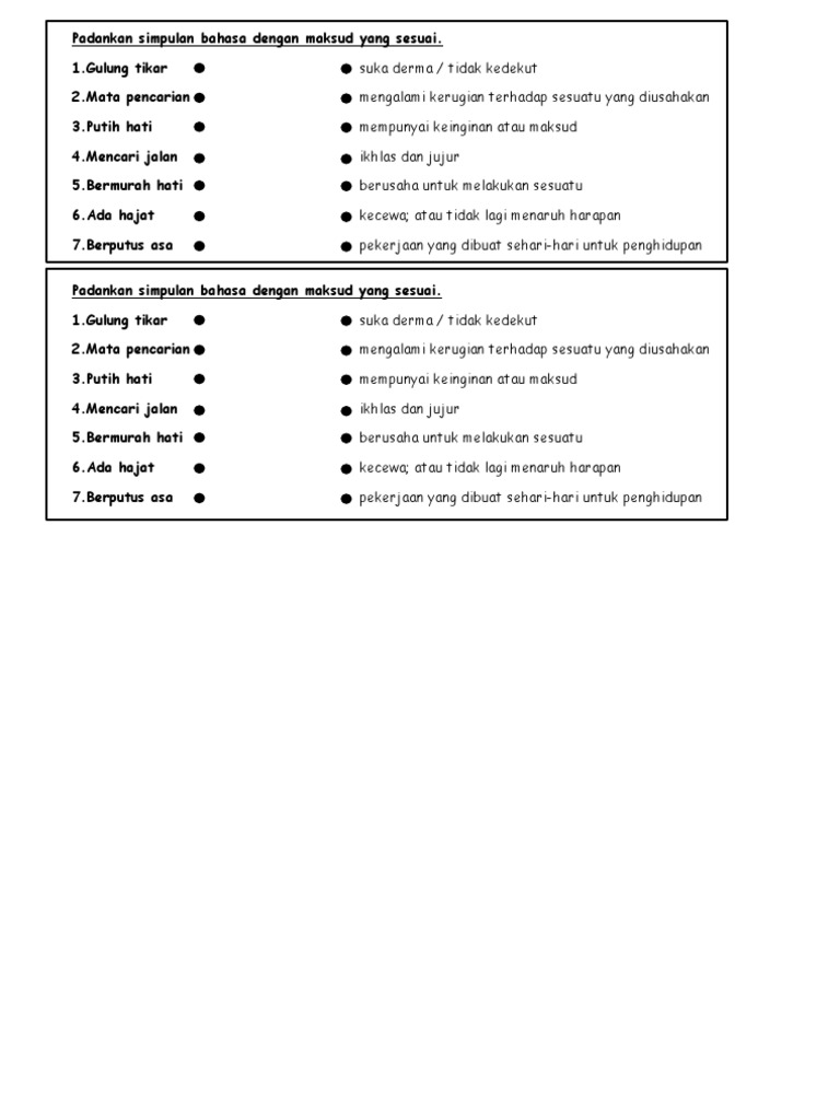 Padankan Simpulan Bahasa Dengan Maksud Yang Sesuai