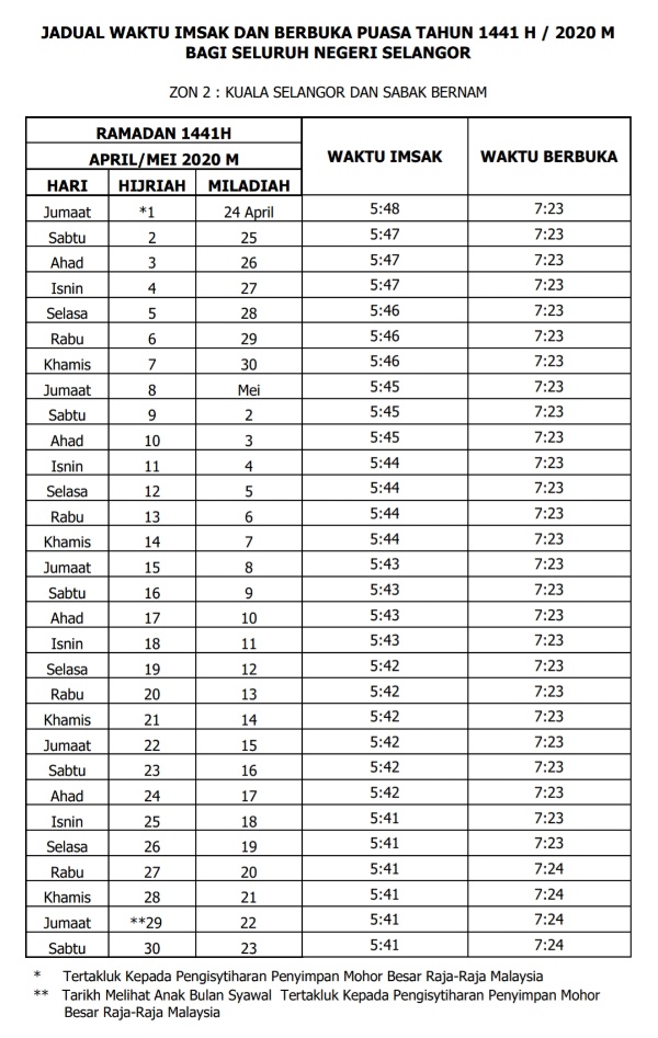 Jadual Waktu Imsak Dan Berbuka Puasa Tahun 1441h 2020m Negeri Selangor Dan Kuala Lumpur Cerita Ceriti Ceritu Mamapipie