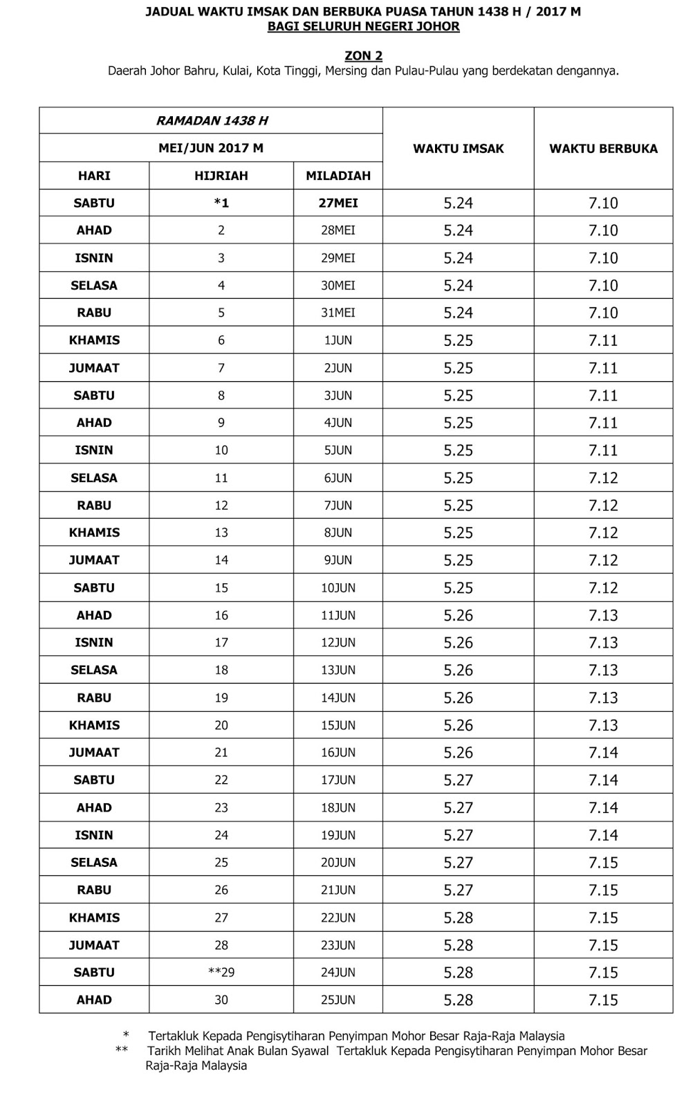 بولتين جوهر On Twitter Jadual Waktu Imsak Dan Berbuka Puasa Negeri Johor Tahun 1438h 2017m Zon 1 Zon 2 Zon 3 Zon 4 Ramadan1438h